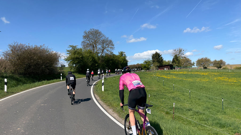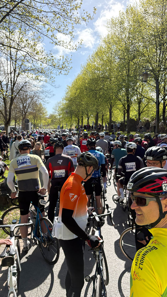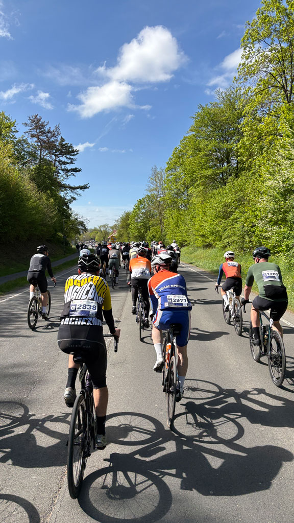 Direkt auf den ersten Kilometern wurde klar: Heute würde nicht nur die Strecke fordern, sondern auch das Tempo im Feld. Immer wieder bildeten sich Gruppen, es wurde an Hinterrädern geklebt, kurze Gespräche geführt oder sich mit einem Nicken motiviert. Der Fahrtwind, das Surren der Ketten und das gleichmäßige Rollen des Feldes machten schnell deutlich, warum solche Veranstaltungen eine ganz eigene Faszination haben.